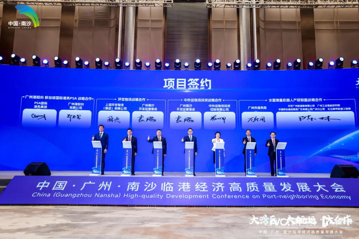 大湾区(南沙)临港产业集聚区、大湾区航运联合交易中心揭牌。 以通道带物流、物流带经贸、经贸带产业 万吨级巨轮排成长龙,集装箱车辆穿梭如织,昼夜不停运转的港口,见证了中国经济的强大韧性与蓬勃生机。 千年商都,通江达海。早在21世纪初,广州市委、市政府就将“南拓”战略目光投向南沙,热火朝天地开港建城,让南沙发展临港经济的优势与日俱增,产业日益壮大。时至今日,极具标志性的南沙港区,已发展成为华南地区规模最大、功能最齐全的综合性港区,2024年集装箱吞吐量近2050万标箱。 “粤港澳世界级港口群正加速形成,有力支撑了粤港澳大湾区的发展。”交通运输部水运科学研究院院长柳鹏指出,其中广州港以南沙海港为重点,推动海港与空港、铁路港、公路港“四港”联动,进一步提高了港口的带动力,促进了航运物流产业、邮轮和游艇产业、临港汽车制造和高端船舶与海工等产业集聚。若从全国范围看,港口在促进产业转型升级和城市发展中的作用也进一步凸显。 以港促产、以产兴城、港城共荣,成为世界港口城市发展演变的普遍规律。谈及新时代的港产城融合发展,柳鹏提出建议称,广州可以以南沙港区为重点,充分发挥广州港的优势,编制实施“十五五”广州港产城融合发展规划和实施方案,推动港口枢纽实现向综合枢纽跃升、向“港口+通道+物流”跃升、向更好服务内外贸一体化跃升的“三个跃升”。“通过完善港口集疏运体系,加强与西部陆海新通道、陆海联运通道的对接,促进物流降本提质增效,以通道带物流、物流带经贸、经贸带产业。”他说。 同时,推进实现一体融合、交旅融合、交能融合“三个融合”,既要发挥广州国际商贸中心、全国先进制造业基地等重要功能,又要大力发展邮轮经济,支撑国际消费中心城市建设,并共建国际航运绿色走廊,促进城市绿色低碳转型。此外,推进科技创新、服务业创新、模式创新“三个创新”。 签约项目预计新增营收近百亿元 为推动广州构建世界一流临港产业集群,当天大会上,“大湾区(南沙)临港产业集聚区”在南沙正式设立。据悉,集聚区将聚焦航运物流、航运服务、国际贸易、临港制造、海洋科技等领域,加速推动南沙临港产业集群式发展。 有了大湾区(南沙)临港产业集聚区这样的重大平台,南沙加速打造助力企业发展兴业的资源富地。大会现场,中外运南沙国际物流中心、南沙港区国际物流智慧云港、美的国际物流总部等一批临港经济项目集中签约,总投资额近70亿元。这些项目涵盖了船舶运输、供应链物流、国际船舶管理、大宗商品交易、海洋高端装备制造等细分领域,预计新增近百亿元营收产值。